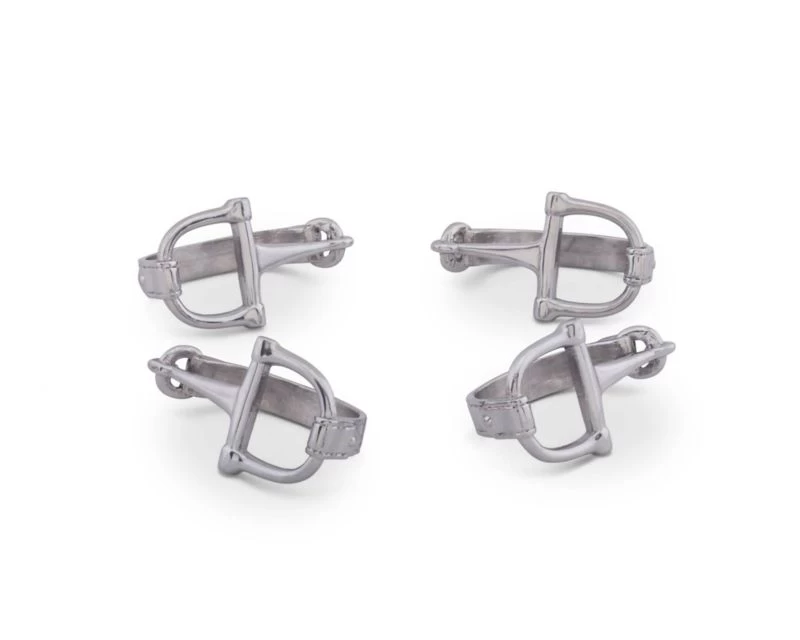 Unequivocally for the Equestrian Set, these Arthur Court Equestrian Napkin Rings are cast in the shape of a D Ring Snaffle Bit. The set of 4 napkin rings will rein in your napkins so they are a study in orderly beauty on your table. Dress your table in equestrian style with Arthur Court’s Bit Napkin Ring Set. Hand-crafted and cleverly cast as miniature replicas of a D ring snaffle bit in shiny signature aluminum ally, this set of 4 adds polish to a themed tablescape. Horse lovers will be delightfully surprised when they take their place at your table.