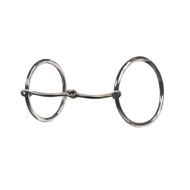 The O-ring is a great bit to start colts in and show them the basics of barrel racing. The large connection in the center of the snaffle keeps the bit from locking up keeping the horse comfortable. The weight of the rings also makes the bit very balanced. This is a nice bit to ride from breaking horses to competing in the arena; this bit is a must in every horseman’s tack room.  – Brittany Pozzi