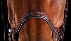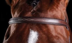 Made from high quality European leather this bridle has an anatomically shaped headpiece that evenly distributes pressure across the poll for comfort and padding around horses ears allows for maximum freedom and comfort. Double padding over poll area minimizes pressure. Ergonomically designed noseband is shaped to alleviate pressure of the upper jaw and molar teeth. Cheek strap and padded cheek ring alleviated pressure of facial nerves.Â