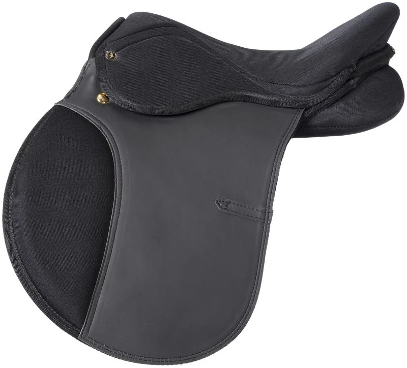 Help the young rider develop a good seat with this great value saddle featuring a new deep seated flexible lifetime guaranteed saddle tree for added rider security, superb balance and positioning. It is even lightweight enough for most children to carry, and synthetic so it is easy for them to take care of themselves. Fitted with rear crupper ring. Fittings not included.