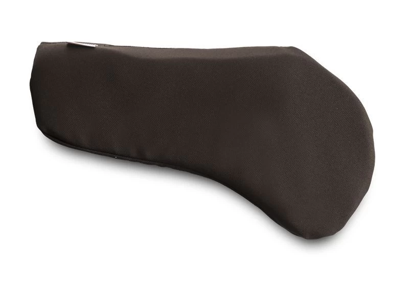 The Impact Gel Shoulder Bridge Pad is designed to support horses with a pronounced shoulder pocket and prominent withers. It is composed of shock-absorbing Impact Gel and a layer of memory foam, and encased in black spandex. To effectively reduce pressure points, place it directly against the horse, with the tapered edges facing the horse.