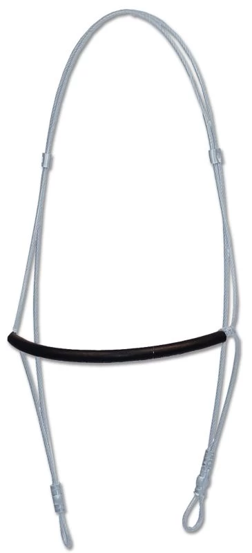 The Mustang War Bonnet is both a training and competition piece of equipment. As a training device, the bonnet encourages correct head position by applying pressure to the poll. As a noseband/tie down, it aids in balance – especially in tight turns and hard stops. Manufactured with long-lasting vinyl-covered cable with a rubber covered nose piece. For use with a tie down (not included).