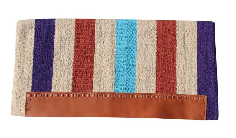 This traditional Navajo Saddle Blanket is woven out of 100% wool. The double fold design provides just the right amount of protection. The authentic wear leathers protect the wool fibers from the saddle.