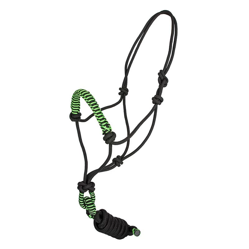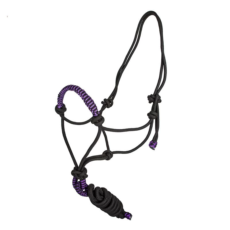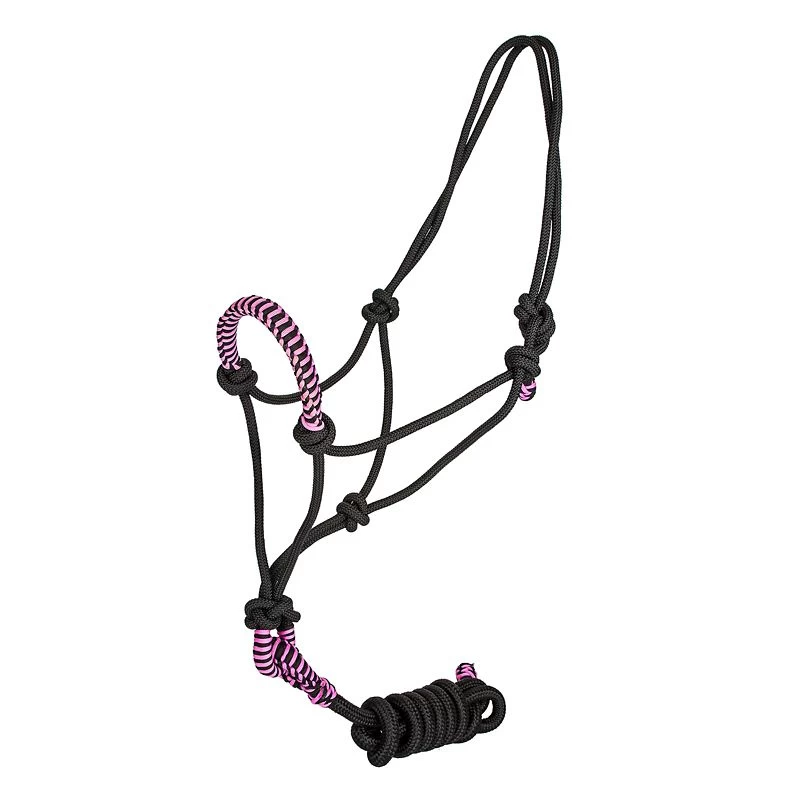 This classic cowboy rope halter is tightly woven yet pliable. Features include a nylon cord wrapped noseband, heat sealed and cord wrapped end, and a matching cord wrapped lead rope. Easy to adjust, it is perfect for daily use and training, too.Â