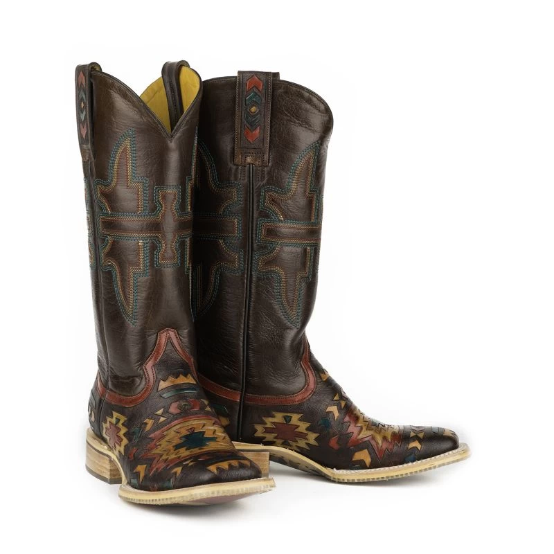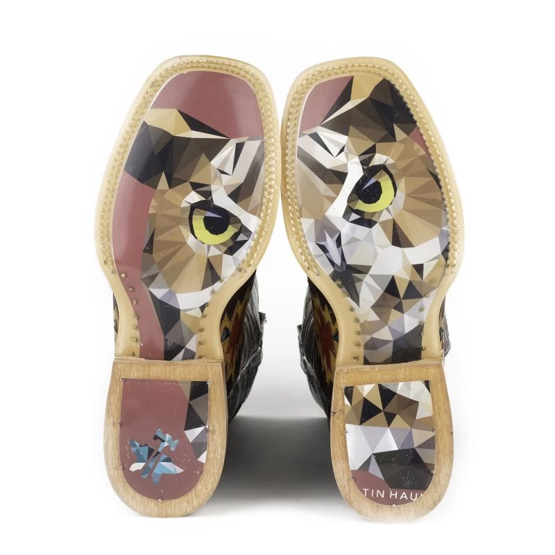 The Tin Haul Women’s South by Southwest Western Boots are perfect for work and play. These designer cowgirl boots feature a colorful hand painted, hand-tooled vamp, brown embroidered shaft, and is made from premium leather. The South by Southwest Cowgirl Boots are handmade with an obvious owl sole and hand-tooled pulls for easy use.