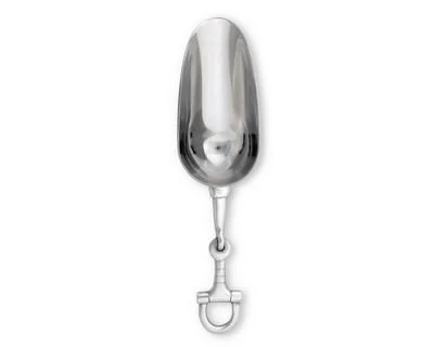 Distribute ice from a bucket with flair when using this horse bit ice scoop from the Vagabond House Equestrian Collection. Those who appreciate the sport of horse racing will love owning this large 9-inch ladle with a small replica of a horse bit on the handle’s end, crafted in lustrous, silvery aluminum alloy. The spoon portion of the serving piece has a rounded, tapered end to avoid spills and make pouring and serving easy. This implement can also be used to scoop out servings of candy or ice cream at parties. Its brilliant shine and unique pewter motif stand out to command attention and inspire conversation among steed aficionados. Wash this item by hand and dry with a soft cloth to discourage spotting.